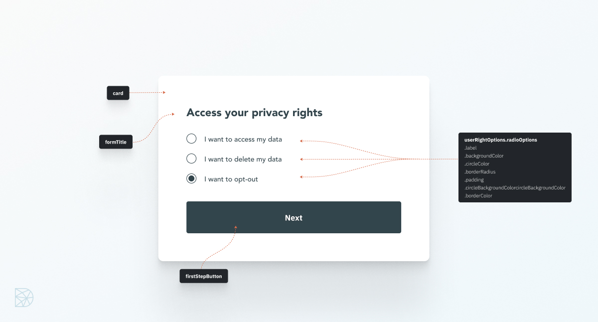 | `card`                      | Container of Privacy request widget                            | [DidomiCardOptions](https://developers.didomi.io/api-and-platform/widgets/privacy-widgets/edit-a-widget/options#didomicardoptions)     |