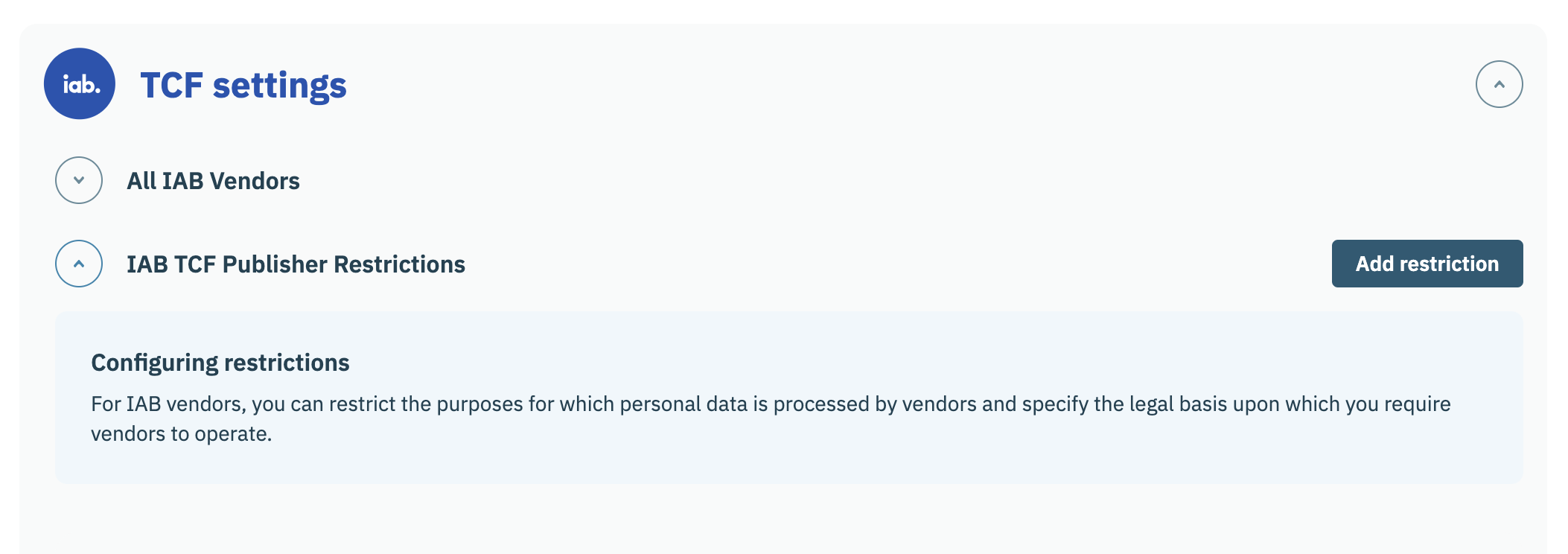 2. Go to TCF settings -> IAB TCF Publisher Restrictions